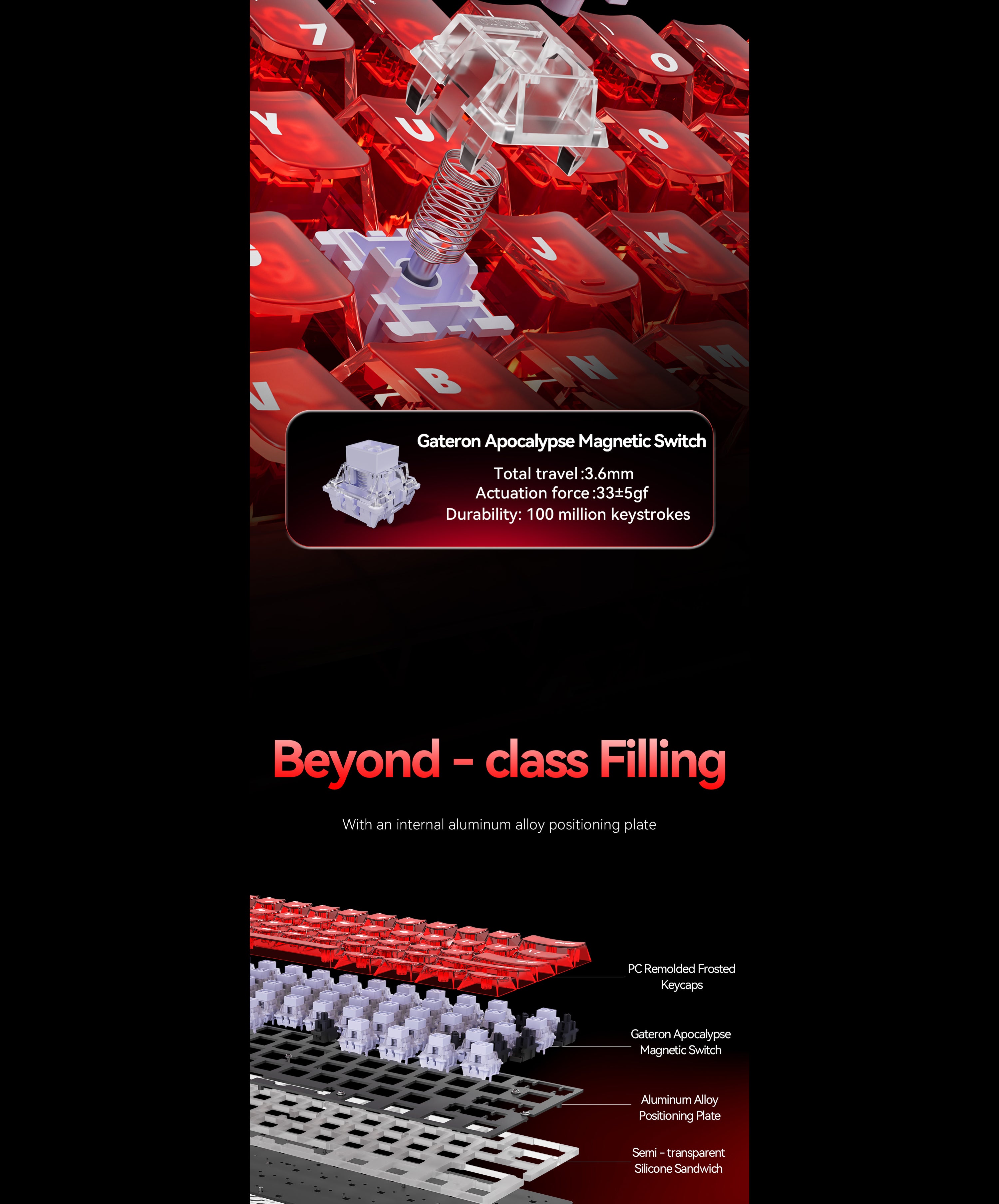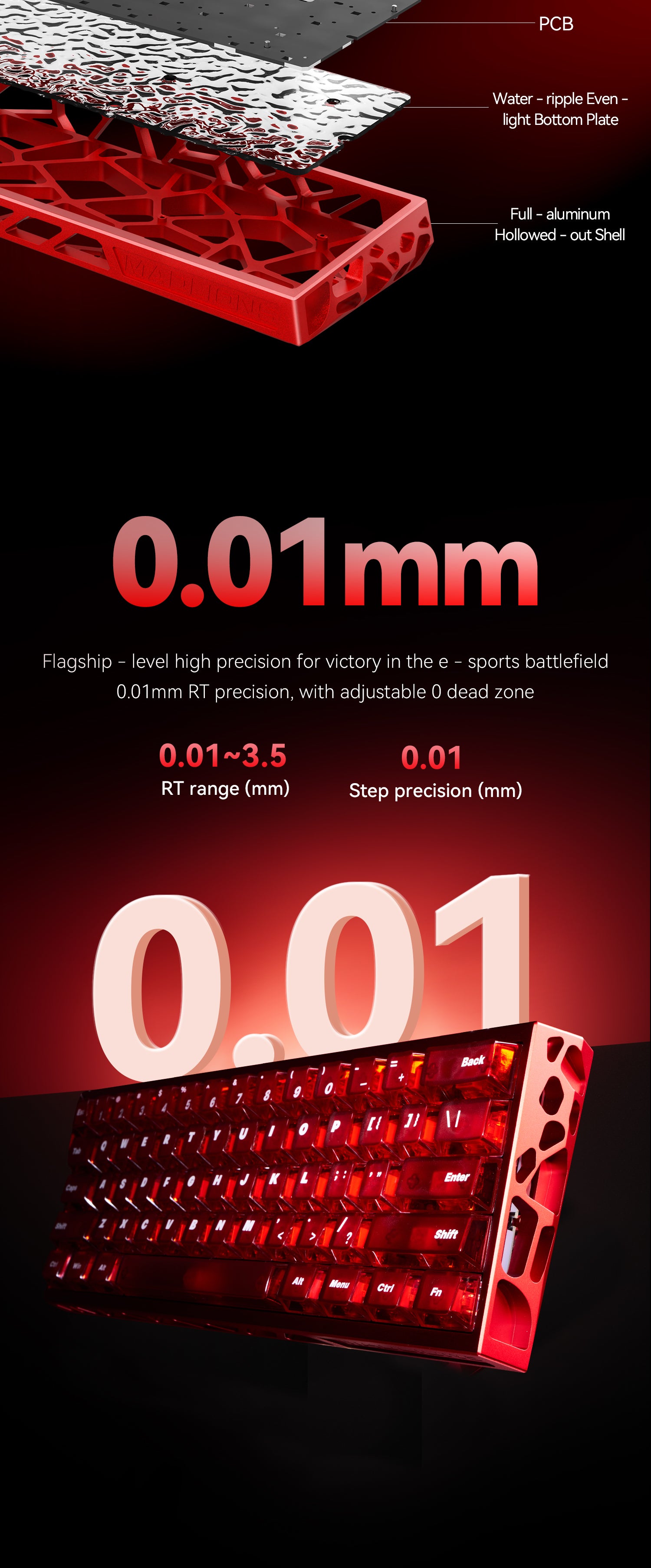 Adjustable actuation (as low as 0.02 mm) with Rapid Trigger for ultra-fast response. -